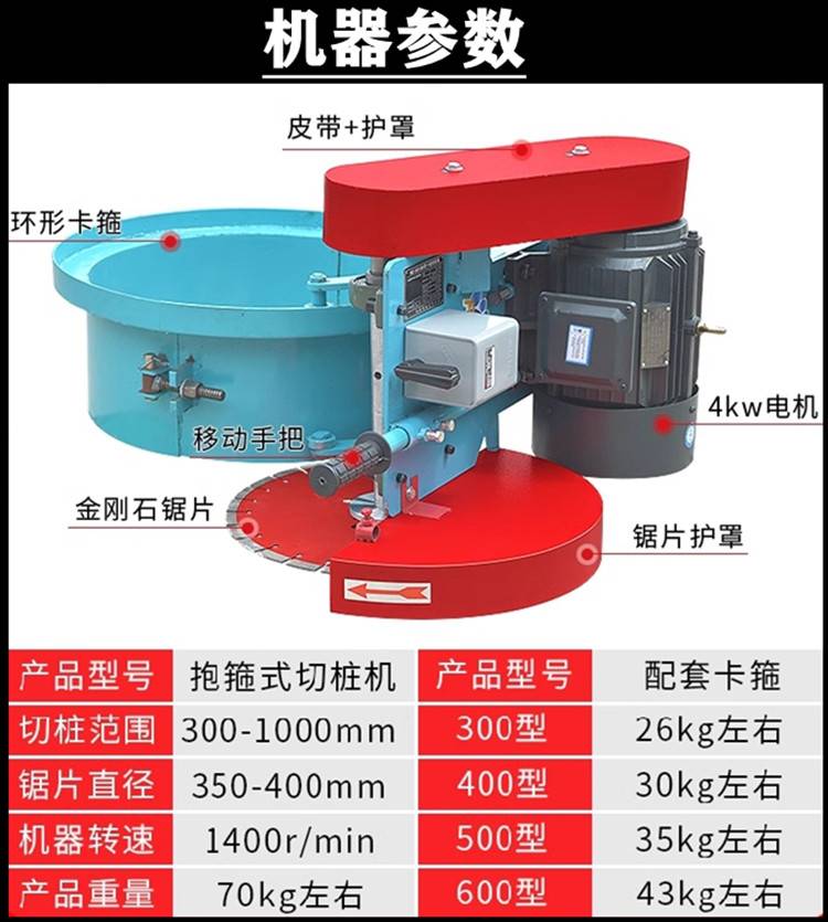 水泥管桩头切割机 电动抱箍式切桩机 卡箍式混凝土桩锯桩机
